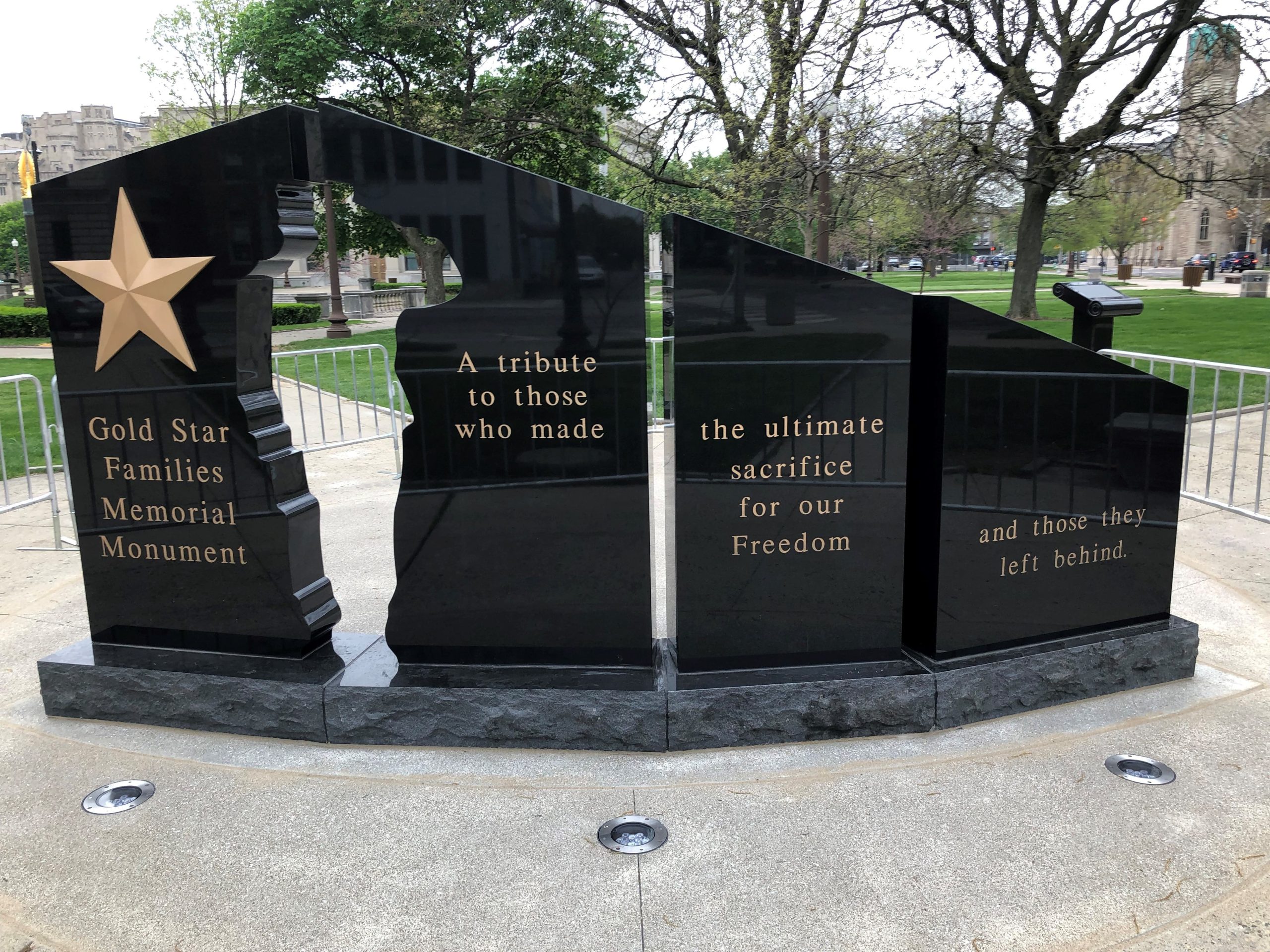 In April 2021, the Indiana War Memorials Commission broke ground on the first monument constructed within the Indiana War Memorial Plaza Historic District since 1998. Located just south of Indianapolis’ Central Public Library, on the northeast side of the American Legion Mall near the intersection of St. Clair and Pennsylvania Streets, the Gold Star Families Memorial Monument will commemorate the valor and sacrifice of all Hoosier service members who have lost their lives while in service to our country and honor the families left behind–known as Gold Star Families. They are a vital part of our country’s military community and history.